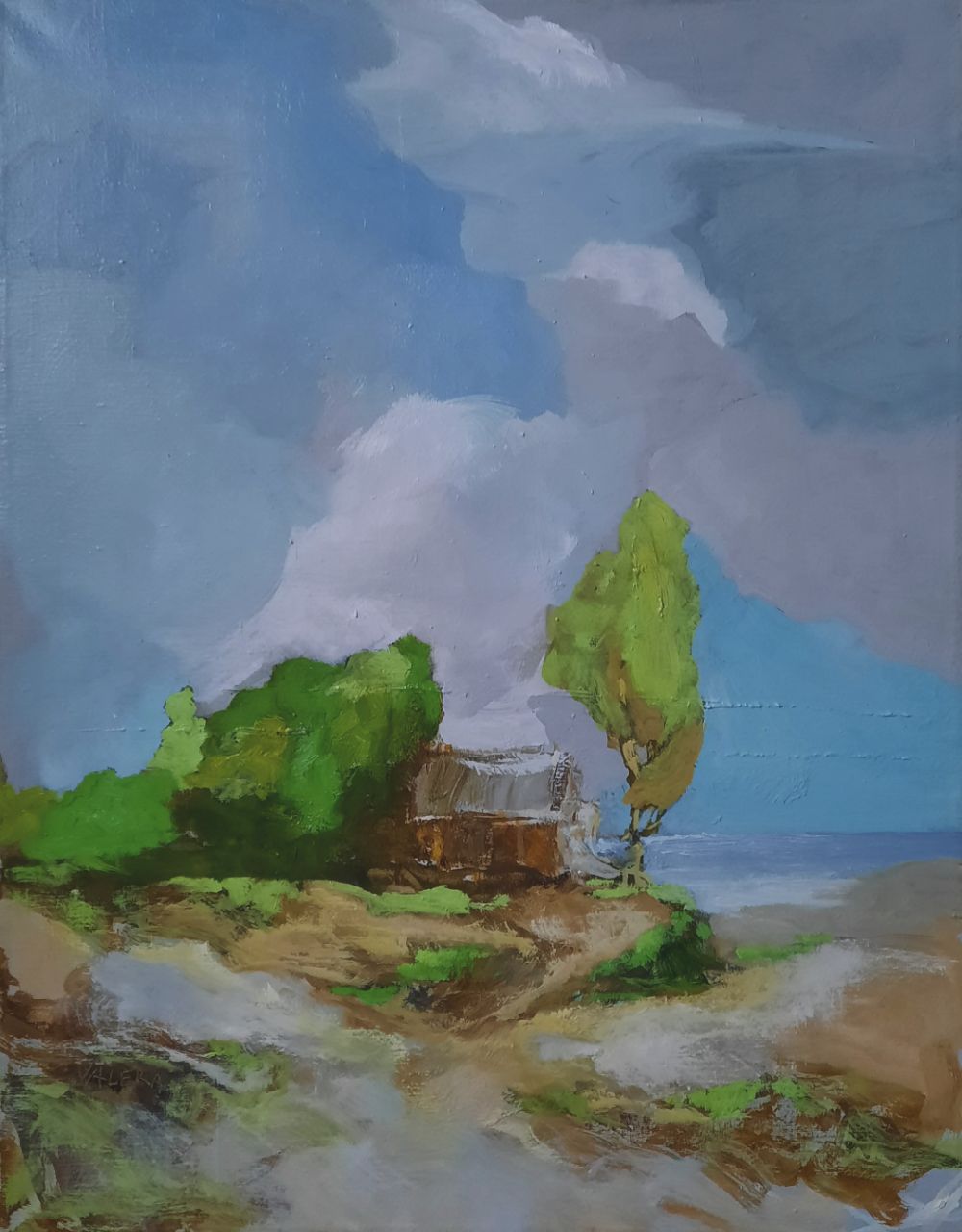 Главная / Каталог / Живопись и графика / Валерий Песин — Этюд (домик на берегу)